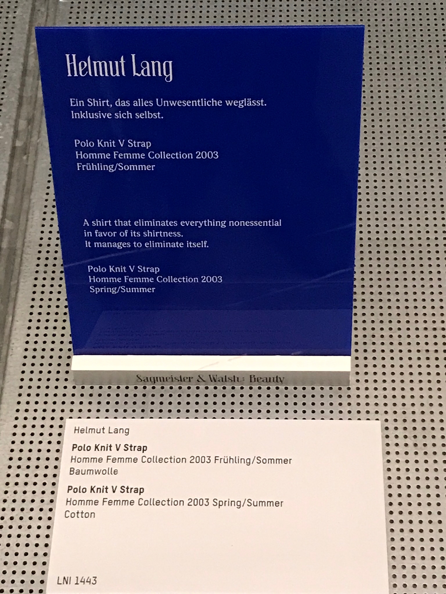 However, because these popular culture productions have remained peripheral to Vienna’s high-culture reputation, on which its tourist status as a European capital of culture rests, they have not been able to provide an enticing enough environment to lure Lang back to Vienna from the idyll of Long Island, where he has resided since retiring from fashion and devoting himself to art.16 At least not yet permanently. Lang’s most recent solo exhibition, “Various Conditions,” was in the Stadtraum Gallery in Vienna and the Sammlung Friedrichshof in the Burgenland in the summer and fall of 2017 (http://www.h-lang.studio), while a Helmut Lang Archive recently opened in Vienna’s Museum of Applied Arts (see Figures 23-26). It is therefore not impossible that he may relocate back to Austria at some point, just as Veruschka returned to Berlin from Brooklyn in the aftermath of 9/11 with the second Bush presidency.