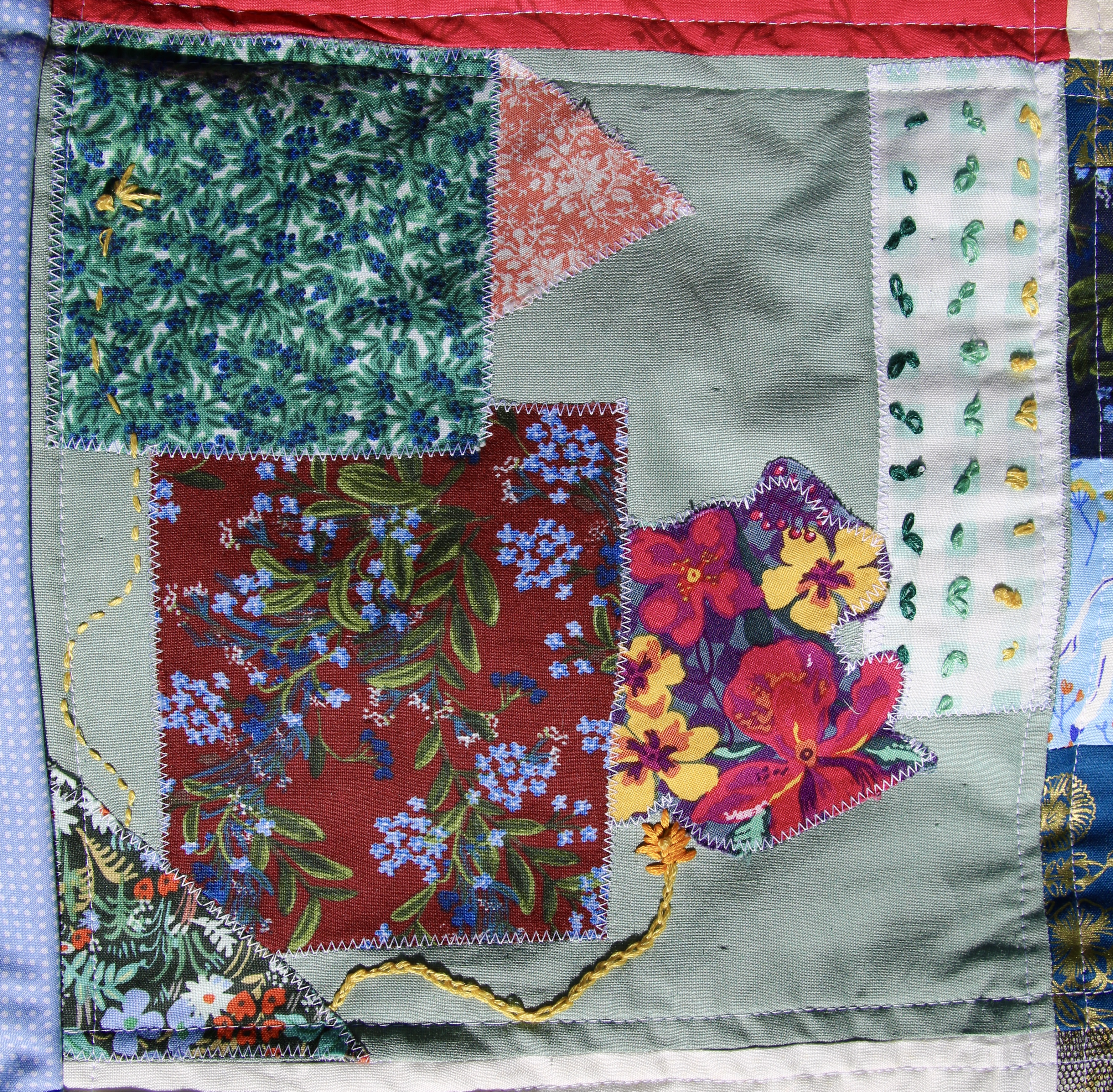 Wandering by myself and staying in to remain in my pandemic bubble shifted with the MMS prompts to wondering and making sense with art materials stashed in two nine-cube shelves and in baskets in my home. I sewed from four years of age, making clothing for dolls, and made clothing for myself and others from my mid-teens. I have supplies on hand to quilt, sew, knit, crochet, embroider, weave, spin, paint, and bead, as well as natural materials such as feathers, sticks, stones, grasses, and seed pods found and gathered from my yard and as I walk around my neighborhood for collage and adding to art projects. Thinking through making (Ingold “Making”) with these materials is part of my arts based research practice. Making (sense and art) with the MMS prompts opened to sewing and to knowings through making a quilt and sowing a garden. In this research, change occurring on a global scale had me noticing and feeling fear and hope. This autoethnographic w(a/o)ndering (Peterken, “Battledress”) with my sensing and the quilt opens to making and playing with some hopes/fears, and more things to ponder. My daily neighborhood walks during the pandemic lockdown in a college town in Utah, USA, shifted to considering the MMS prompts.