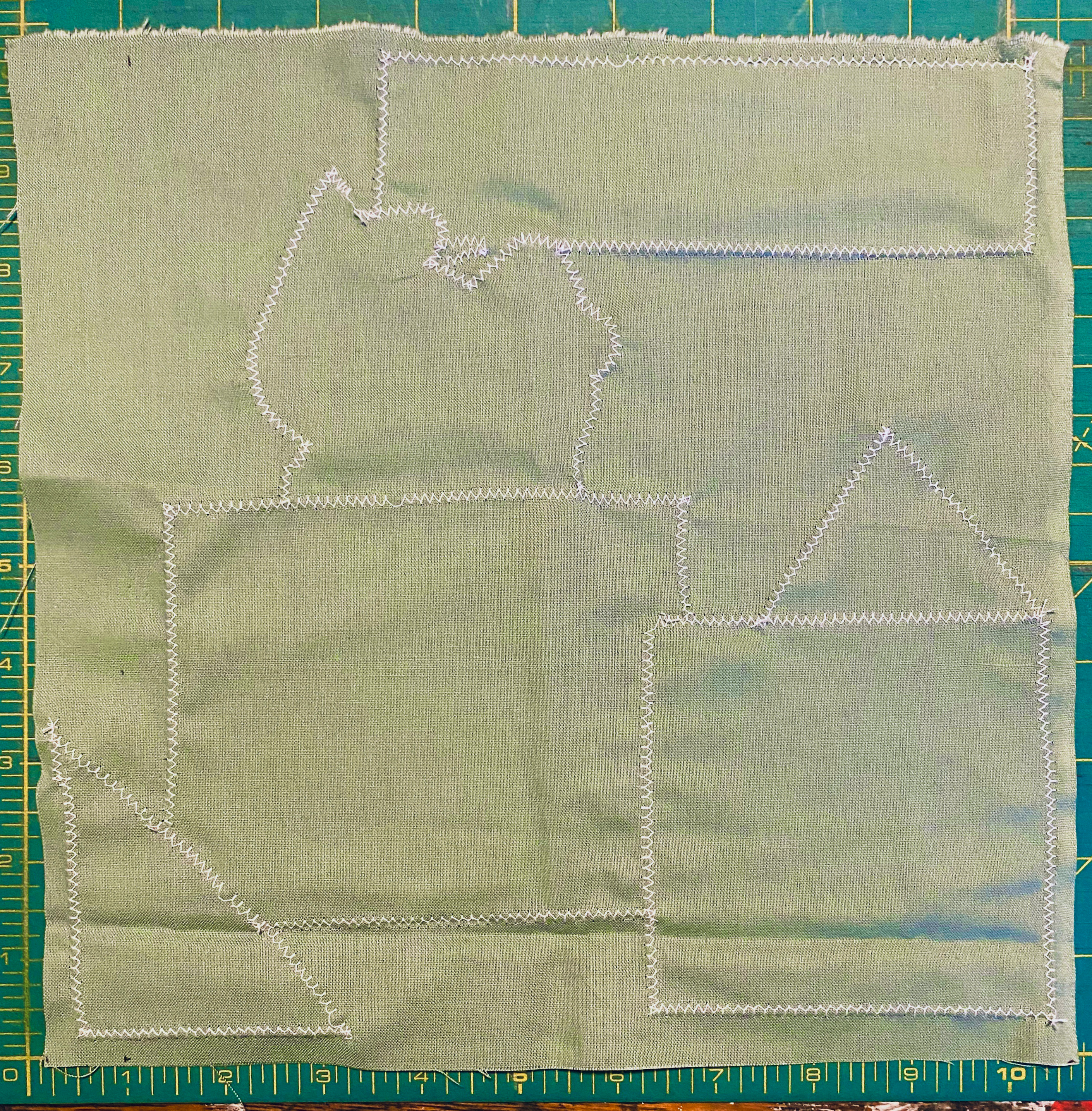 Living in the USA I am near quilting shops, but they were not open. Quilting can be considered an American crafting tradition connected to pioneering and lack of materials for warmth, as well as part of crafting and the arts in many cultures (Flannery; Fitzpatrick and Bell; Ferrarese). I used quilting for research before in Australia to bring together photographic images young children created (transferred onto fabric) for their meaning making and belonging in an early childhood center (Peterken, “Crafting Living Inquiry”). Making a quilt can be a solo activity with many hours of sewing, part of leisure (Stalp, “Negotiating Time”), and can also give pleasure (Ferrarese) as materials are brought together to make visually appealing patterns. I wanted the quilt to be an artwork, to have visual appeal, but that was not the main purpose. It was a research product for sensemaking. Quilting has the potential to be “a powerful socially communicative practice” (Nieberding 8) as women/makers gather in ‘quilting bees’ to create a finished article, but quilting in a pandemic during lockdown is lonely. I find some comfort in working with fabrics in relation with the MMS prompts. My quilt-making as artist and researcher pulled focus and created a space to do something to think about and make sense with.
