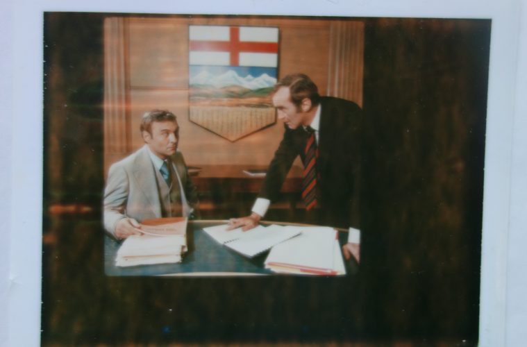Lougheed’s mythic status rests, at least partly, on the erasure of The Tar Sands from public memory. The CBC’s docudrama directly challenged the doubly articulated myths of Syncrude’s founding and Lougheed’s Premiership. To this end, The Tar Sands presents a dramatized interpretation of events depicting a proud and determined Premier Lougheed becoming boxed in over the course of the Syncrude negotiations by world events and pressure applied by the foreign-controlled Syncrude consortium. Here, it is perhaps prudent to offer more information on the TV show itself, beginning with the show’s two-minute disclaimer, aired at the start and read by journalist and CBC icon Barbara Frum. The disclaimer informs the audience that The Tar Sands is, “a work of fiction constructed around certain known events” based on “an imagined recreation of negotiations leading up to an agreement reached on February 3, 1975” (Feldman 1978, 71). “Since most of the agreement was worked out behind closed doors,” Frum tells viewers: “Much of the film’s dialogue and many of its scenes and characters are, of necessity, fiction” (ibid).