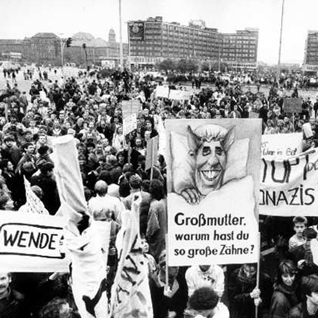 Twentieth-century German historiography has given the everyday prominence as a space of performing Eigen-Sinn in capturing individual agency vis-à-vis wider sociopolitical demands and state control (Lüdtke 13). In this context, the everyday functioned as a gatekeeper for the reassessment of GDR reality in light of the still dominant totalitarianism approach in historiography (Lindenberger 1). (On the need for a new approach to researching the everyday of the GDR, see Rubin and Ebbrecht-Hartmann in this issue.) In the context of writing and remembering 1989-90, however, the everyday has remained out of focus, as has the individual agent of change. Accordingly, historians have largely analyzed East Germans as a political mass (Grix 3). The image on the right shows one of the most significant demonstrations of East Germans for political reforms, taking place on Berlin Alexanderplatz on November 4, 1989. This image belongs to the canon of documents framing the reality of the Wende.