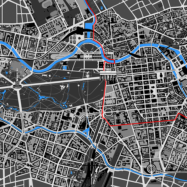 Plan for the “New Berlin,” 1997. Map of Berlin with demarcation of Wall © Senatsverwaltung für Stadtentwicklung Berlin (IMAGE 9) – Click Image to Continue