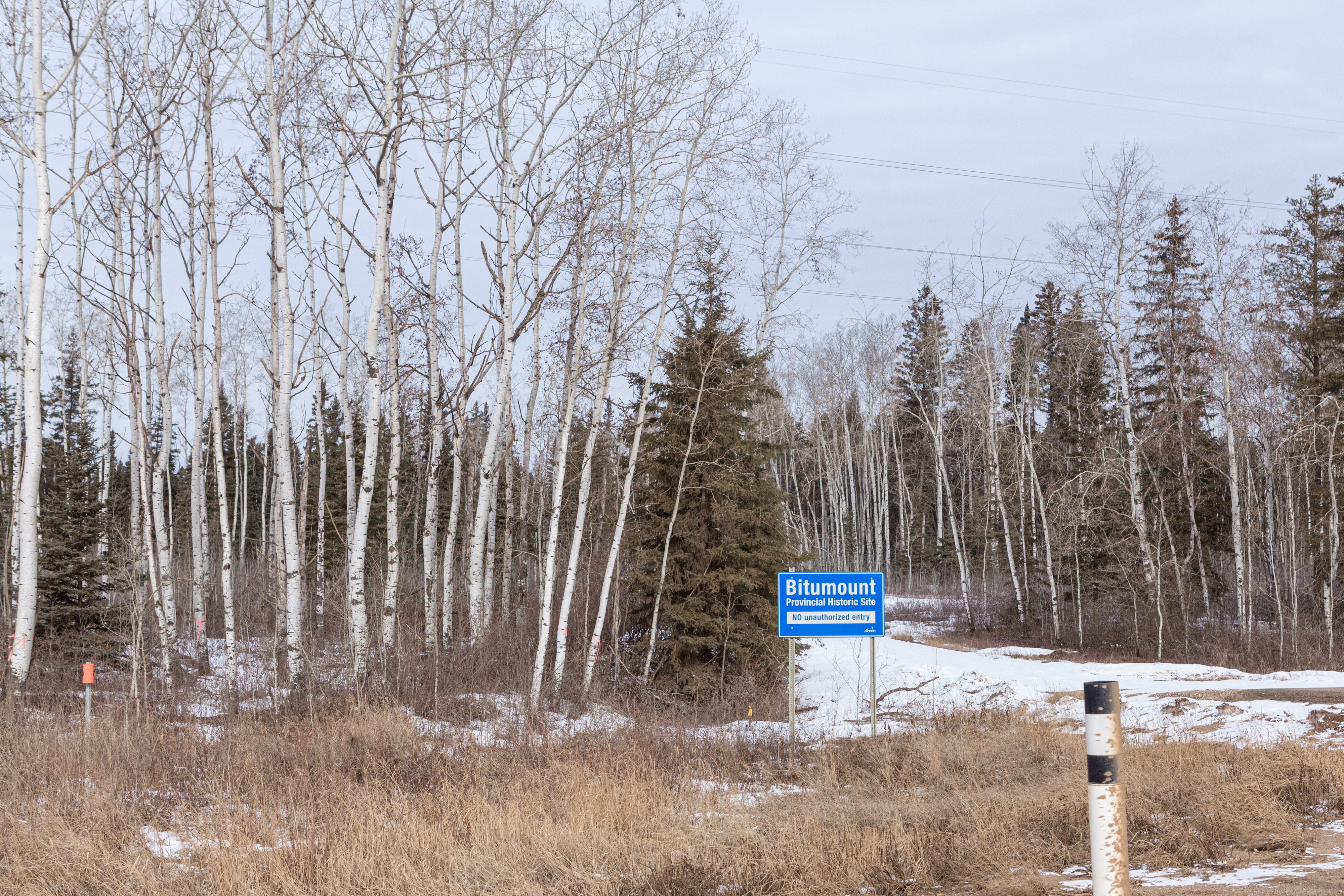 Figure 19: Roadside attraction of decommissioned mining equipment such as this giant bucketwheel which uses carbide tipped incisors to gouge the muskeg peat and soil, exposing the oil-rich sands beneath. In the background is a dragline which is used to carry away extracted material. Steve Rowell, Midstream at Twilight, production still, 2015-16.