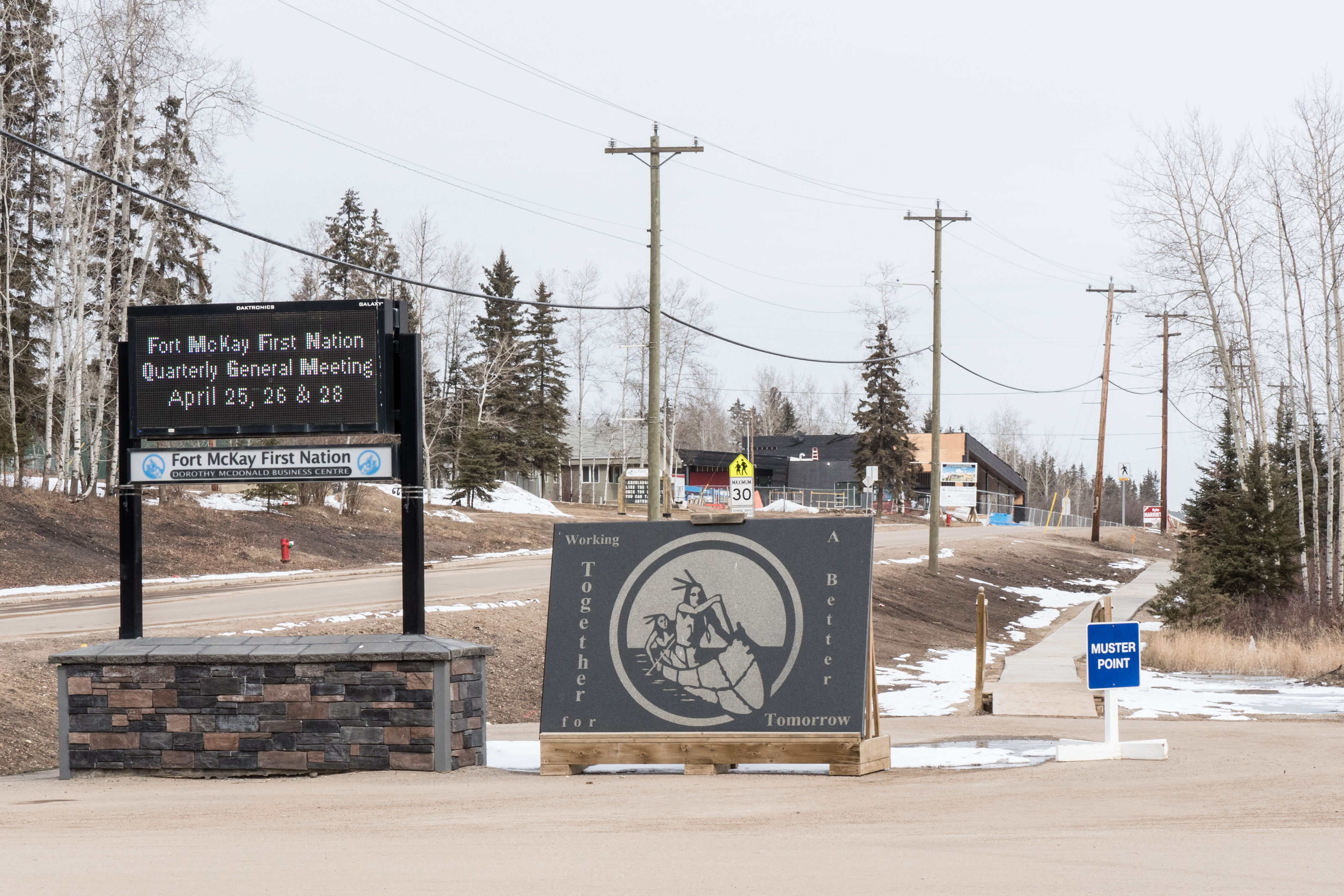 Figure 13: Part of the Athabasca Tribal Council, the Fort McKay First Nation is comprised of members of Cree, Métis, and Dene heritage. Beneath this land is the McMurray Basal Water Sands Aquifer which is at risk of contamination due to activities at the various oil sands operations on the reservation. Steve Rowell, Midstream at Twilight, production still, 2015-16.